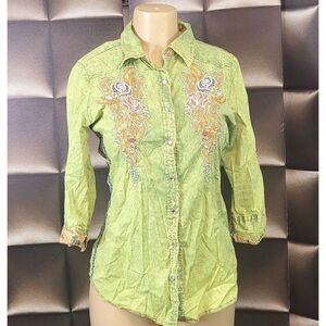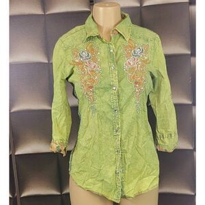 Rhinestone embellished long sleeve cotton western/ rodeo blouse