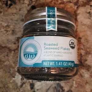 Enhance your dishes with these organic roasted seaweed flakes. Perfect for adding a touch of green to your meals. roasted seaweed flakes a blend of hand harvested Atlantic seaweed. net weight 1.41 Oz 40 g. serving size 1.5 tsp. roasted dulce roasted sea lettuce roasted noir organic. product of Canada brand new