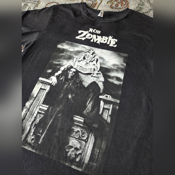 The Rob Zombie T-Shirt in size M is a black t-shirt designed for men. Featuring the Optima brand, this regular fitting shirt showcases a graphic representing the band's dynamic and edgy aesthetic. Perfect for any fan of Rob Zombie or music enthusiasts looking to add a unique and bold statement piece to their wardrobe. The shirt is a great way to showcase your love for the band and make a stylish statement.