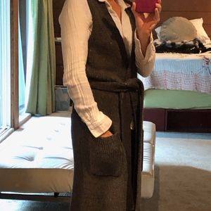 Robbi & Nikki by Robert Rodriguez - Brown Maxi Vest Sweater; Large snap closures the length of the sweater; 2 pockets and belted.