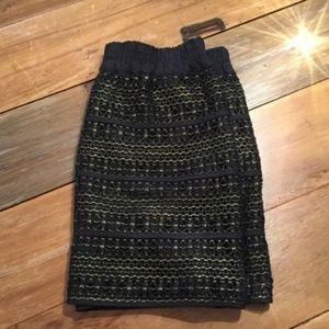 Robbi & Nikki by Robert Rodriguez Gold Metallic Black Knit Skirt. Elastic drawstring waistband. Eyelet detail. Perfect condition, no flaws. Size M.