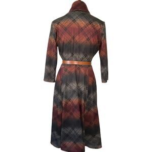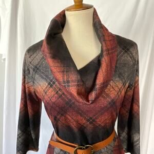 Robbie Bee A-Line Dress Cowl Neck Plaid Belted Midi Length Lined Size Medium