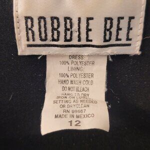 Robbie Bee Black Floral Polka Dot Dress – Size 12, Vintage Style, Cap Sleeves