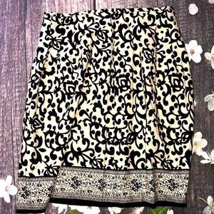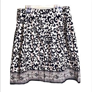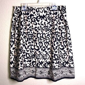 Robbie Bee Black and White Scroll Print A-Line Skirt
