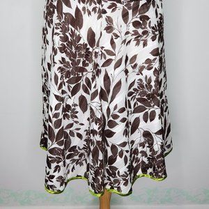 Robbie Bee Brown White Green Leaf Leaves V-Neck Sleeveless Dress