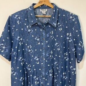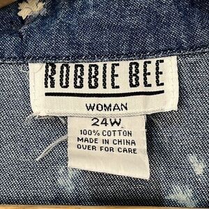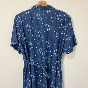 Robbie Bee Ditzy Flower 90s Y2K Denim Maxi Dress Belted Shirt Dress Size 24W