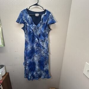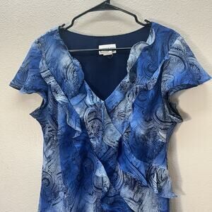 Robbie Bee Dress Sz 16 Paisley Ruffle Ethereal Fairy Night Out Cocktail Party career work vintage chiffon lined short sleeve