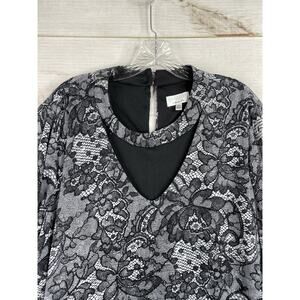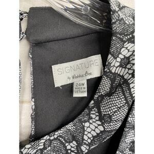 Robbie Bee Dress Womens 24W Black Floral Keyhole Lined Slit Sleeve Flowy Boho