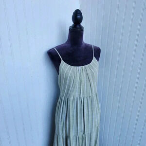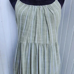Robbie Bee Green White Stripe Strap Rayon Maxi Dress Tank Sz PM