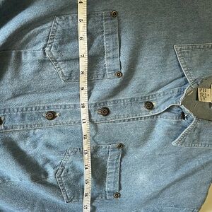 Chic denim shirt dress with a classic collar. Features a button-up front.