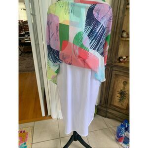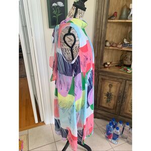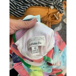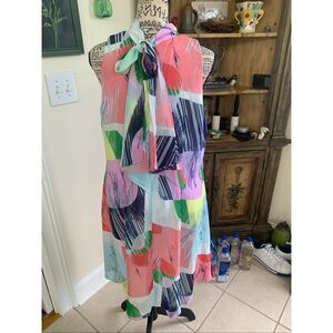Robbie Bee Women's Sleeveless Mock-Neck Chiffon A-Line Dress in size 12. Lined, colorful and flowy. Beautiful color and patterns