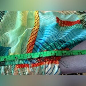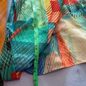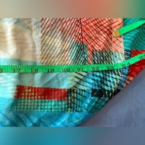 Vibrant midi dress with geometric patterns. Features a relaxed fit and a tie waist. Perfect for casual outings.