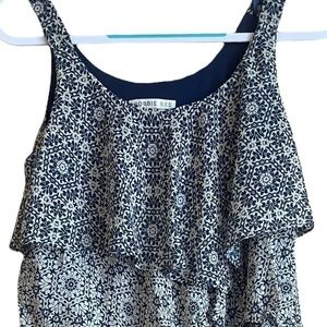 Robbie Bee Navy Blue and Cream Ruffle Dress Sz 6