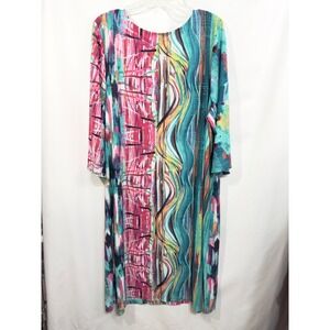 Robbie Bee Plus Size 3X Midi Dress Abstract Watercolor Casual Shift 1364