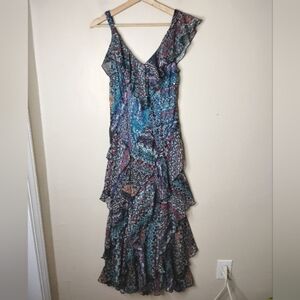 Robbie Bee Ruffle Chiffon Maxi Dress Dressy Boho Flamenco Tiered Size 10