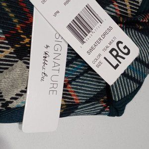 Robbie Bee Signature Sweater Dress Wm Lg Teal Plaid Cowl Turtleneck 3/4 Sleeve