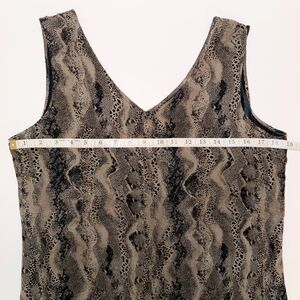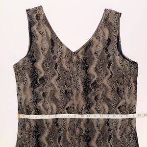 Robbie Bee 100% silk sleeveless python snake print shift dress in tan and black. This classic, minimalist 90's dress features tank style straps, a V-neckline, and is fully lined. Vintage. Excellent used condition. Women's size 10, measurements pictured.