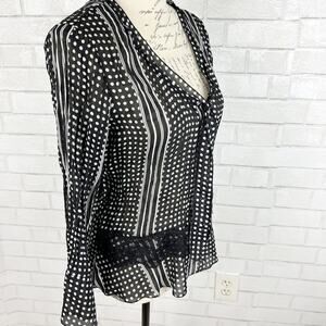 Robbie Bee Stylish Sheer Polka Dot Blouse Size Medium