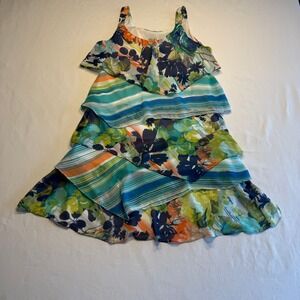 Robbie Bee Tiered Floral & Stripe Sleeveless Dress | Size 6P