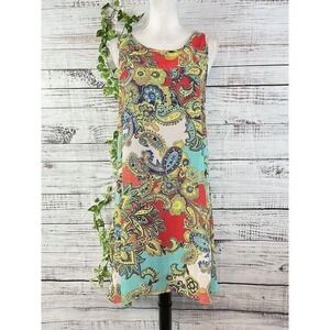 Robbie Bee Tunic Dress size 12 Pink Yellow Paisley Sheer A Line Lagenlook Boho