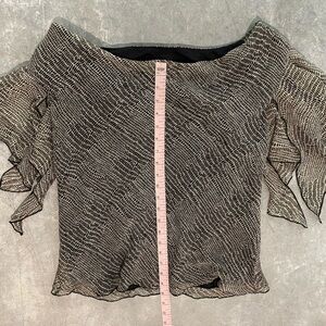 Adorable vintage 100% silk 2 piece blouse and skirt set. Top has a wide/off the shoulder fit with fluttery sleeves. Skirt is a pull on style with an asymmetric cut. Excellent used condition