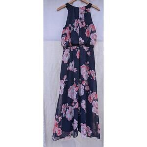 Robbie Bee Women's Halter Floral Sleeveless Maxi Dress Sz 12 Navy Orchid. Dress is in very good condition.