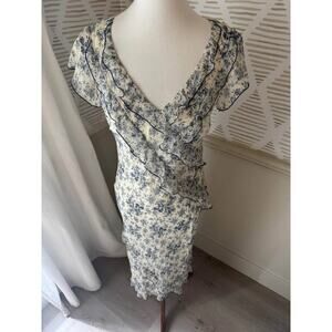 Robbie Bee Women’s Size 10 (runs small) 100% Silk Ruffle Collar Maxi Dress