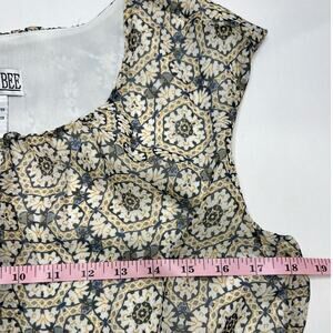 Robbie Bee Women Size 12 Black/Gray/Cream/Gold Pattern Tie Waist Dress