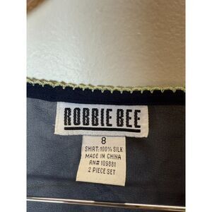 Robbie Bee Women's Size 8 Blue Silk Cropped Blouse Top Y2K Embroidered