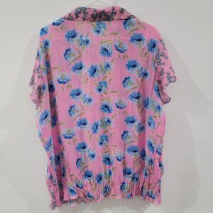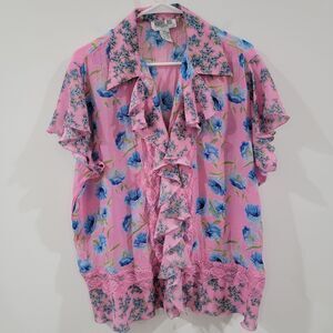 Robbie Bee Womens Top Size 16W Pink Floral Ruffle Lace Feminine Dainty