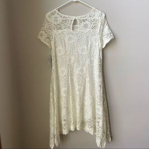 Robbie Bee Cream Lacey Short Sleeve Midi Dress