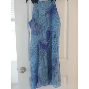 Keywords: Robbie Bee blue dress S, halter neck summer dress, sleeveless casual dress, easy pullover vacation outfit, lightweight spring knee dress, blue print shift dress