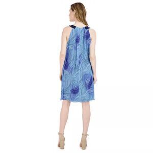 Lightweight and effortlessly stylish, this Robbie Bee sleeveless dress is the perfect throw-on-and-go piece for warm weather. Featuring a flowy halter neckline, easy pullover design, and an abstract print in shades of blue, this dress hits just above the knee and flatters every frame. Ideal for casual days, vacation getaways, or dressing up with heels for a brunch-ready look.