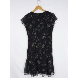 Robbie Lee Women's Vintage 90s Whimsy Floral Silk Mini Dress Size 6 Black
