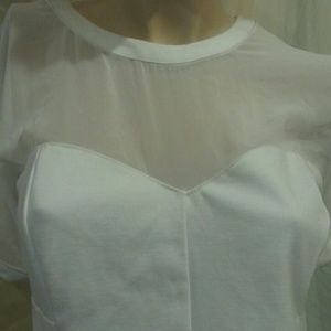 A simply stunning bodycon dress boasts corset-style seams and a chiffon illusion yoke for a flattering look that's both modern and sophisticated. Back zip closure, 83% polyester, 14% viscose, 3% elastane with 100% polyester yolk, dry clean. store display has minor soiling