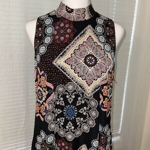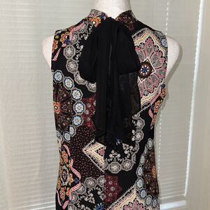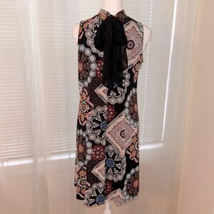 Robbie Bee S Black Multi Floral Textured Sleeveless Back Tie Swing Dress