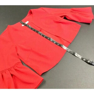 Robbie Bee Womens Red Flare Sleeve Lined Open Front Cropped Jacket Size Small
