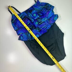 Robby Len Women's 16 One Piece Peacock Print & Gold Ruffled One Piece Swimsuit