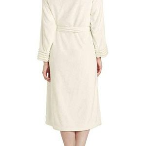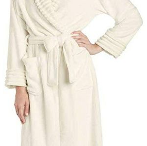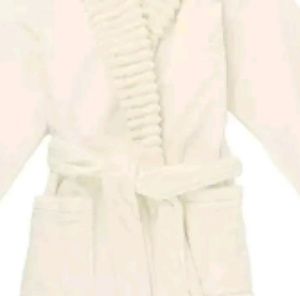 Luxuriously soft 48" length with patch pockets 100% polyester faux fur trim on the collar and cuffs