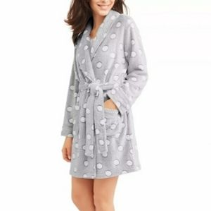 Gray robe with polka dots,