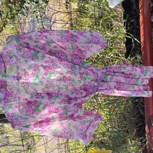 XXl short sleeve short robe. Sheer beautiful rose pattern. Matching tie for waist.