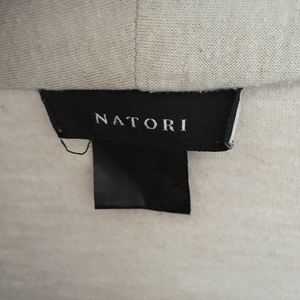 Natori designer robe, tan color. Features exterior belt and interior ties. Great for after bathing or lounging at home.
