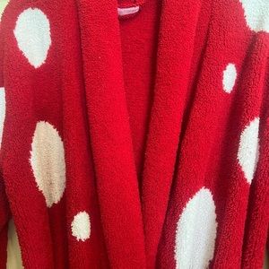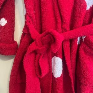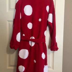 Victoria secret red and white Polk a dot robe. Ties in the front is is 100% Polyester.