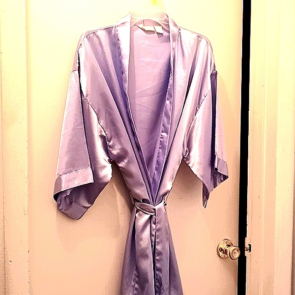 periwinkle Satin robe 3/4 sleeves excellent condition never worn ties at the waist