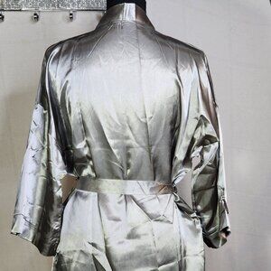 Robe N Hood Grey Silver Poly Namaste In Bed Motif Mid Sleeve Robe w/Belt Sz OSFM