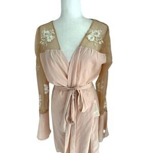 Robed with Love Pink Hildy Robe Short Tie Belt Satin Floral Sheer Size Medium M