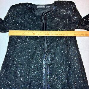 Robert Anthony Black Silk Beaded Open Cardigan Size Medium Party Holiday Dressy