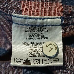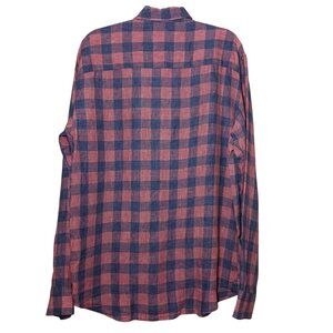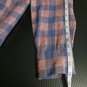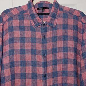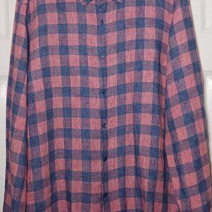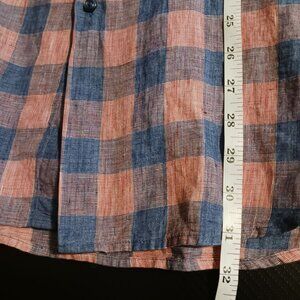 Robert Barakett Mens Longsleeve Plaid Linen Button-Up Shirt Blue/Salmon L