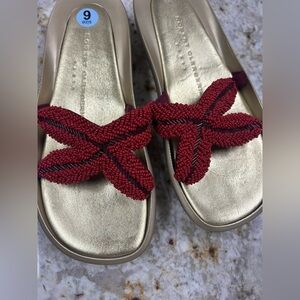 Robert Clergerie Beaded Sandals Gold Red Women’s Size 6 Starfish Beach Vacation