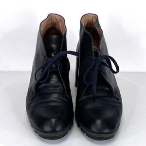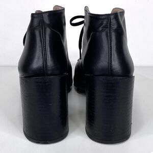 Robert Clergerie Black Leather Lace Block Heel Booties Womens 9.5 Chunky Sole